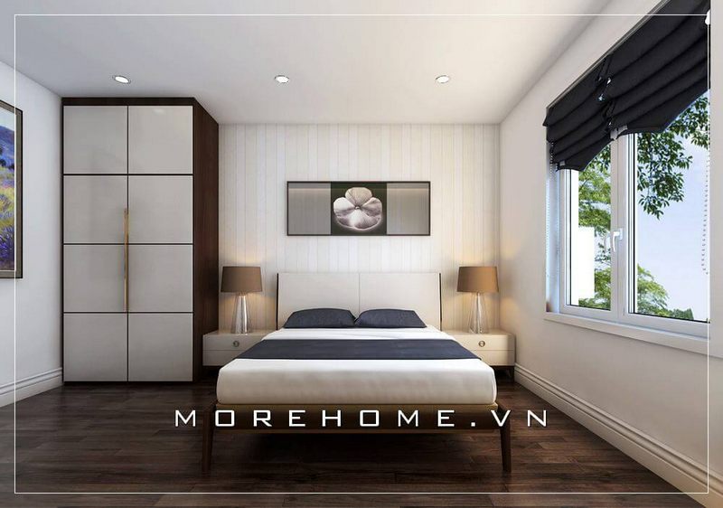 Chọn một giường ngủ có đầu giường làm bằng gỗ tự nhiên với tap để trang trí phòng ngủ của nhà phố đẹp.