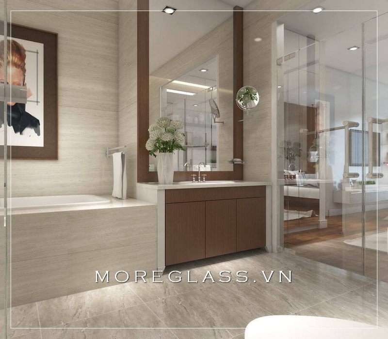 Mẫu kệ tủ trang trí phòng tắm đẹp với thiết kế đơn giản nhỏ ngọn kết hợp gương hình chữ nhật lớn được bo viền tạo điểm nhấn nổi bật cho không gian căn phòng