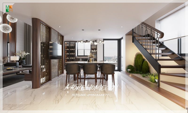 Ngoài ra, việc lựa chọn màu sắc và vật liệu cũng đóng vai trò quan trọng trong việc tạo cảm giác rộng rãi hơn cho phòng ăn nhỏ. Những gam màu sáng và chất liệu phản chiếu ánh sáng như gương hay kính có thể làm cho không gian trở nên thông thoáng và dễ chịu hơn. Kết hợp các giải pháp lưu trữ linh hoạt như tủ đa năng hay xe đẩy di động sẽ giúp bạn dễ dàng sắp xếp mọi thứ gọn gàng mà vẫn giữ được tính hiện đại trong thiết kế. Sự sáng tạo trong cách bố trí và sử dụng đồ nội thất sẽ mang đến cho bạn một phòng ăn không chỉ đẹp mắt mà còn tiện ích.